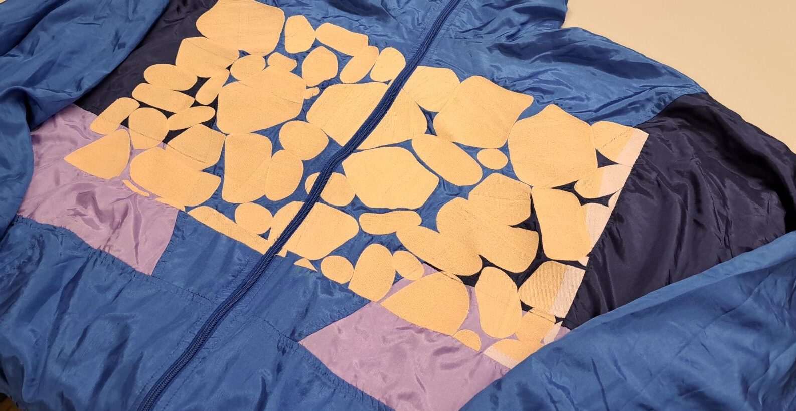 Daniel van der Velden, bekend van het collectief Metahaven, werkt regelmatig samen met het TextielLab. Voor deze opdracht verzamelde hij vintage trainingsjacks die hij liet voorzien van computergestuurd borduurwerk. Zijn ontwerpen variëren van strakke lijntekeningen tot full-colour beelden. Het vakmanschap zit in de details: de geborduurde lijnen sluiten perfect op elkaar aan.