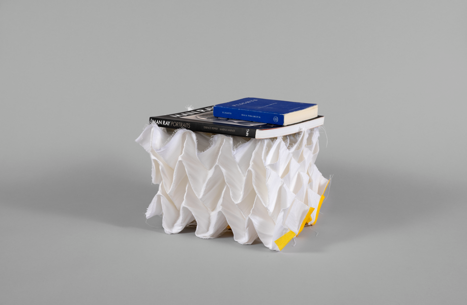 Met ‘Bio-Inspired Textile Structure’ onderzocht ontwerper en onderzoeker Arantza Vilas hoe textiel kan worden ingezet als een zelfdragende, ruimtelijke constructie. Het project ontstond uit een vroege samenwerking met het Bio-Inspired Textiles researchteam van University of the Arts London. Voor Vilas betekende dit haar eerste kennismaking met het lab én met de weeftechniek.