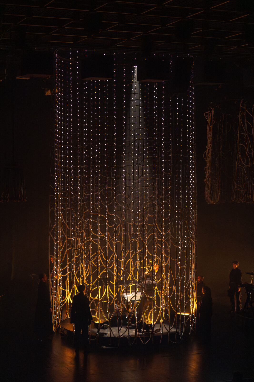 Het project vergde vijf ontwikkeldagen en veertig productiedagen, uitgevoerd door twee passementexperts en drie stagiaires over een periode van vier maanden. Er werd gewerkt met technisch geschikte garens die voldeden aan strenge eisen: vlamvertragend (FR), goed transporteerbaar en met een glans die optimaal werkt onder theaterlicht. Hoewel er geen speciaal garen werd ontwikkeld, was de materiaalkeuze en afwerking cruciaal om het decor geschikt te maken voor een tour langs meerdere theaters.