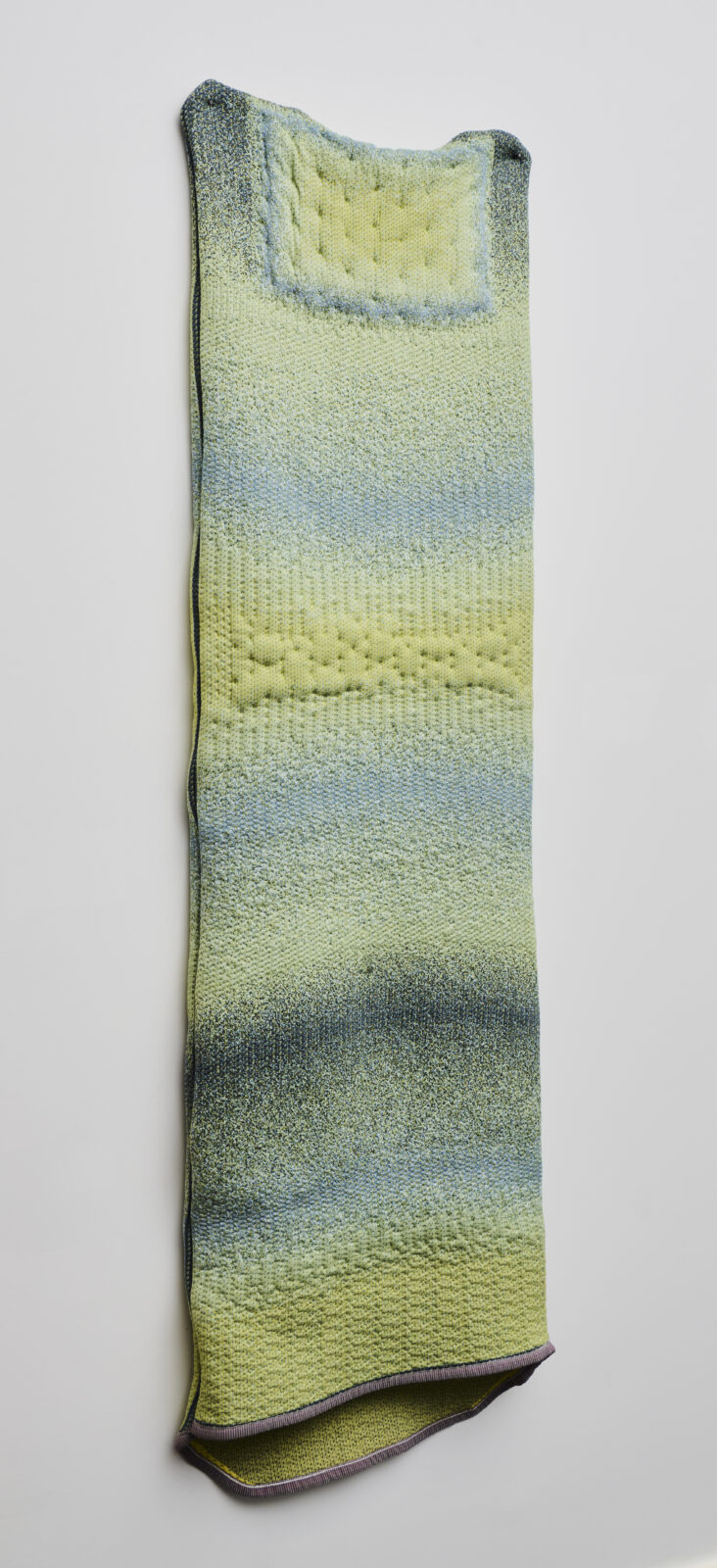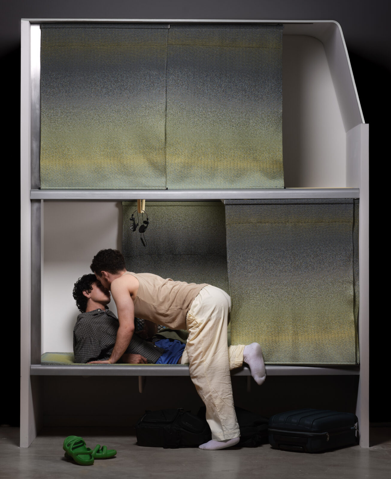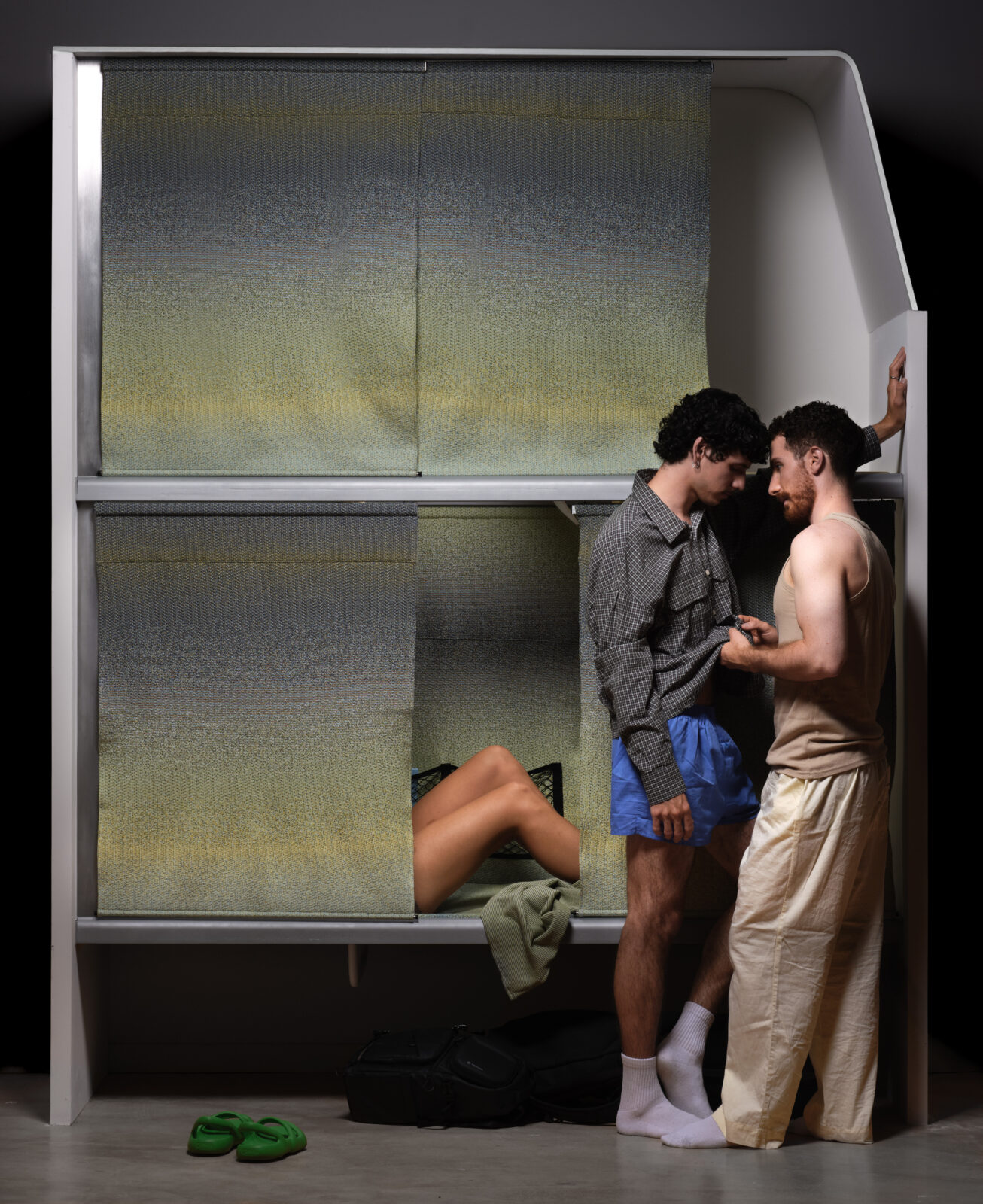 Door variatie in breistructuren en vulling ontstaan zones met ondersteuning en flexibelere delen die zich aanpassen aan het lichaam. In plaats van vier kleuren gebruikte Ascençao er acht, voor een rijker kleurverloop. Het gebreide oppervlak loopt voorbij het bed en vormt panelen die geluid dempen, licht filteren en privacy bieden. Het systeem is licht, onderhoudsvriendelijk, volledig wasbaar en maakt nachtelijk reizen comfortabeler en aangenamer.