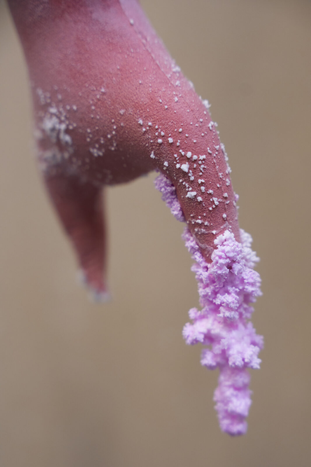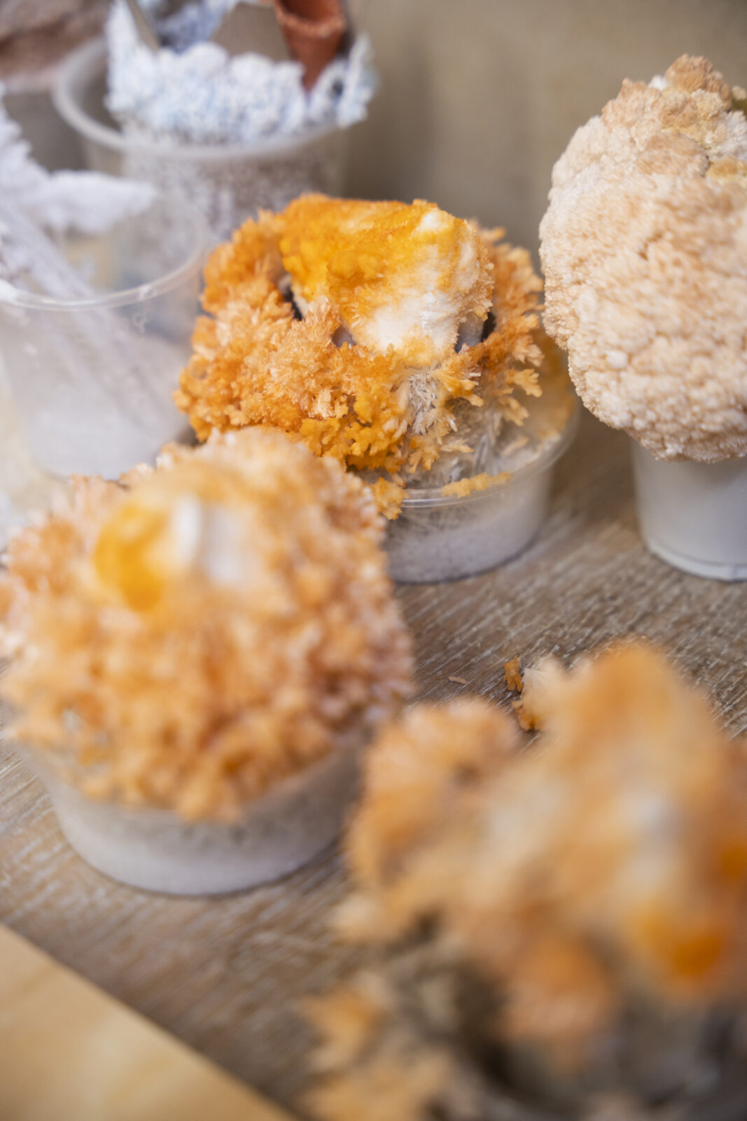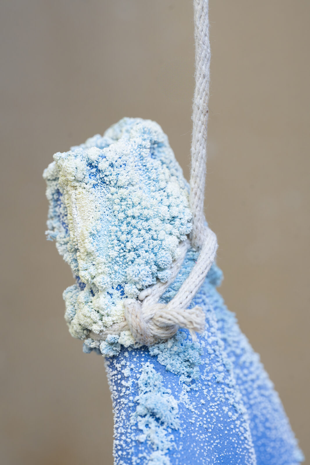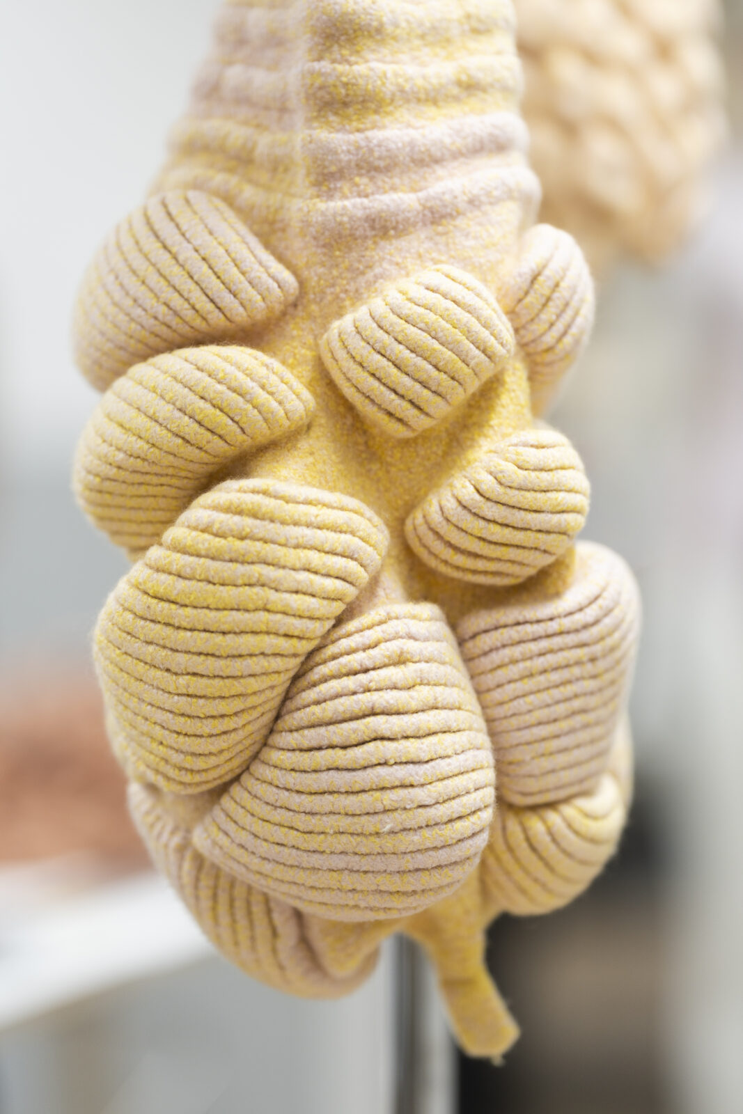 Kunstenaar en architect Colin Chudyk werkte met ‘Grotesque Gardens’ aan een doorlopend onderzoeksproject waarin landvorm en levensvorm samenvloeien. In het TextielLab onderzocht hij hoe hij gebreide en vervilte wollen mallen kon inzetten voor het gieten van keramiek. Deze mallen dragen texturen die hij baseerde op landschappen van extractie, zoals mijnbouw en industriële infrastructuren.