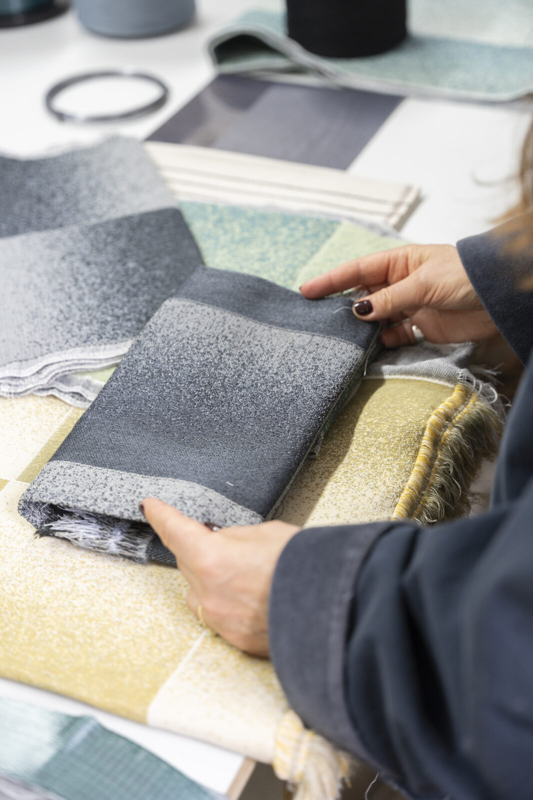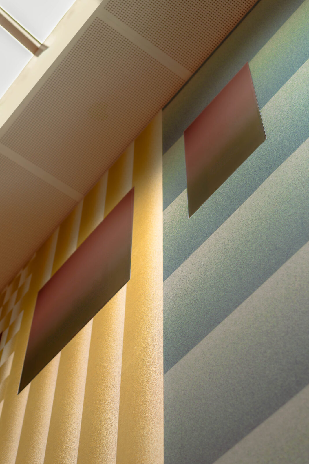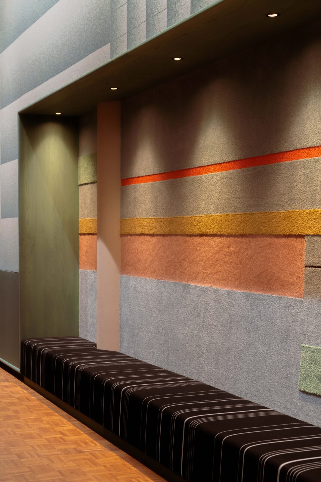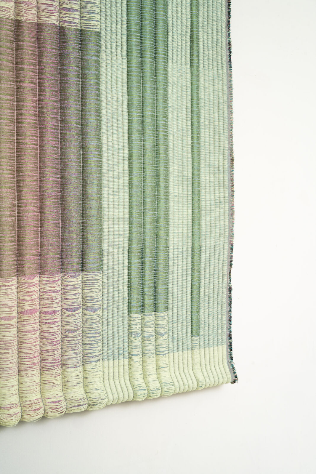 Voor Rademakers Gallery Amsterdam werd het werk uitgewerkt in verschillende formaten en kleurstellingen, waaronder een nieuwe Sage Green-variant. ‘VIVID Meadow’ functioneert niet alleen als textielkunstwerk, maar ook als akoestisch wandpaneel.