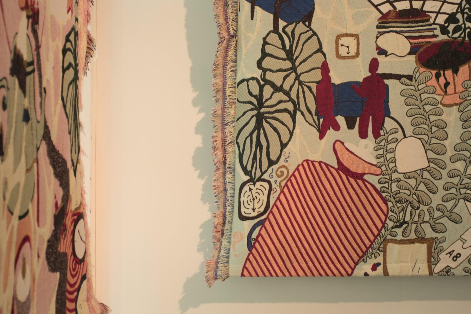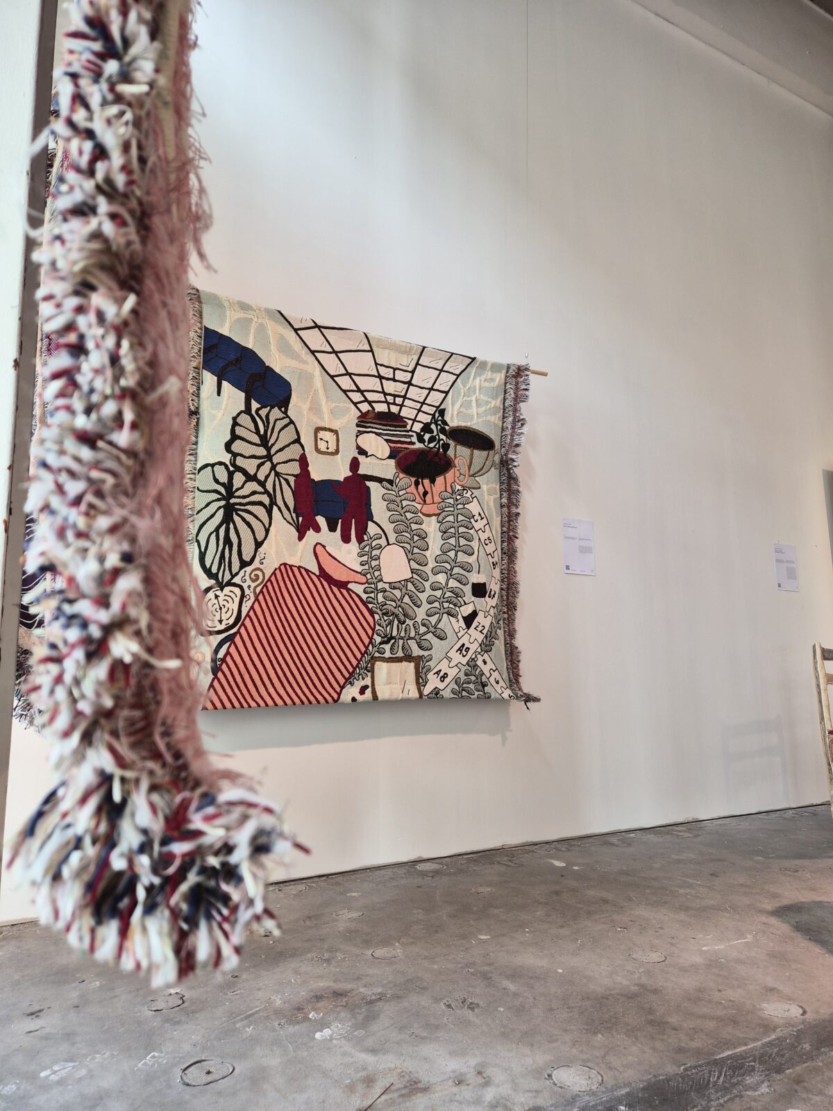 ‘Soft Waiting Room’ van Sam van Dok is een Jacquard-geweven wandtapijt. Het werk transformeert de vaak kille en neutrale sfeer van een wachtkamer door warmte, textuur en kleine ontdekkingsmomenten toe te voegen. De tapijtcollage bevat illustraties van planten, dokterspraktijken en menselijke interacties, waarin verborgen details en subtiele visuele easter eggs uitnodigen tot vertragen, kijken en verwondering. Het ontwerp, gebaseerd op Van Dok’s eigen tekeningen, geeft haar persoonlijke handschrift duidelijk weer en nodigt uit tot een zachte, tactiele ervaring.