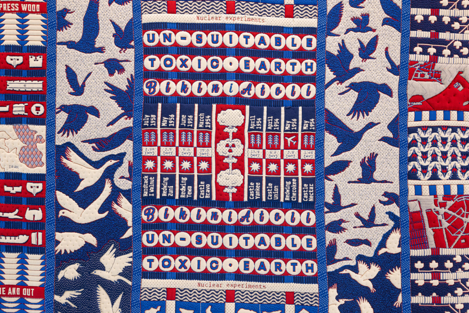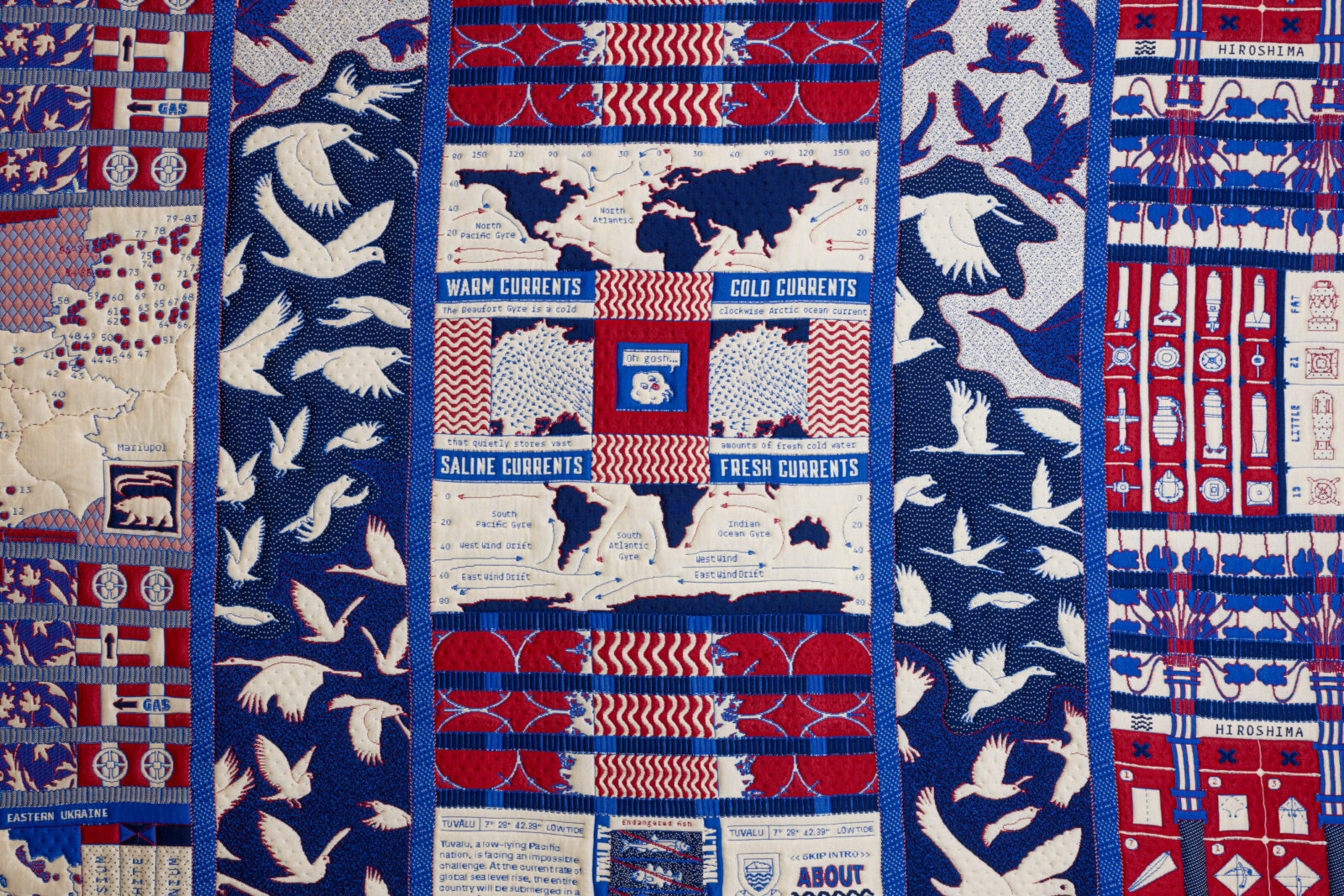 Het panoramische werk ‘What on Earth?’ door Shira Wiesenberg, verdeeld in acht scènes, onderzoekt milieu- en sociale crises wereldwijd. Het beeld van alles uit, van kernbommen op de Marshall-eilanden tot smeltende gletsjers in Canada, van bosbranden in Australië tot mythologische overstromingsverhalen.