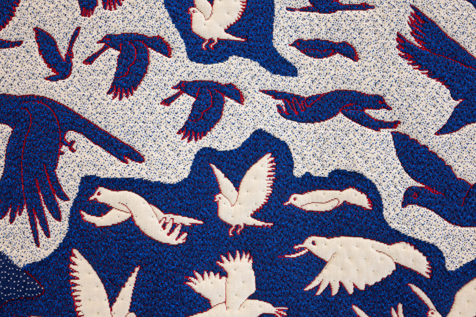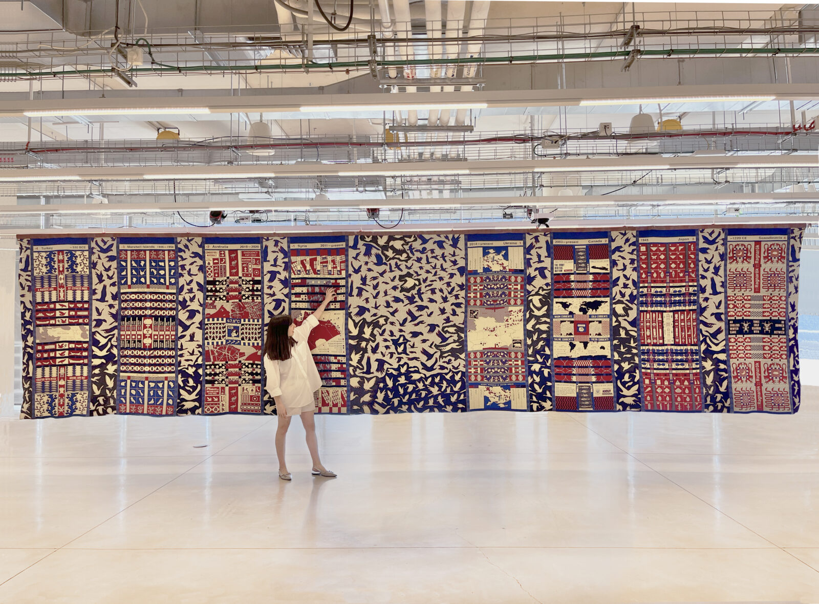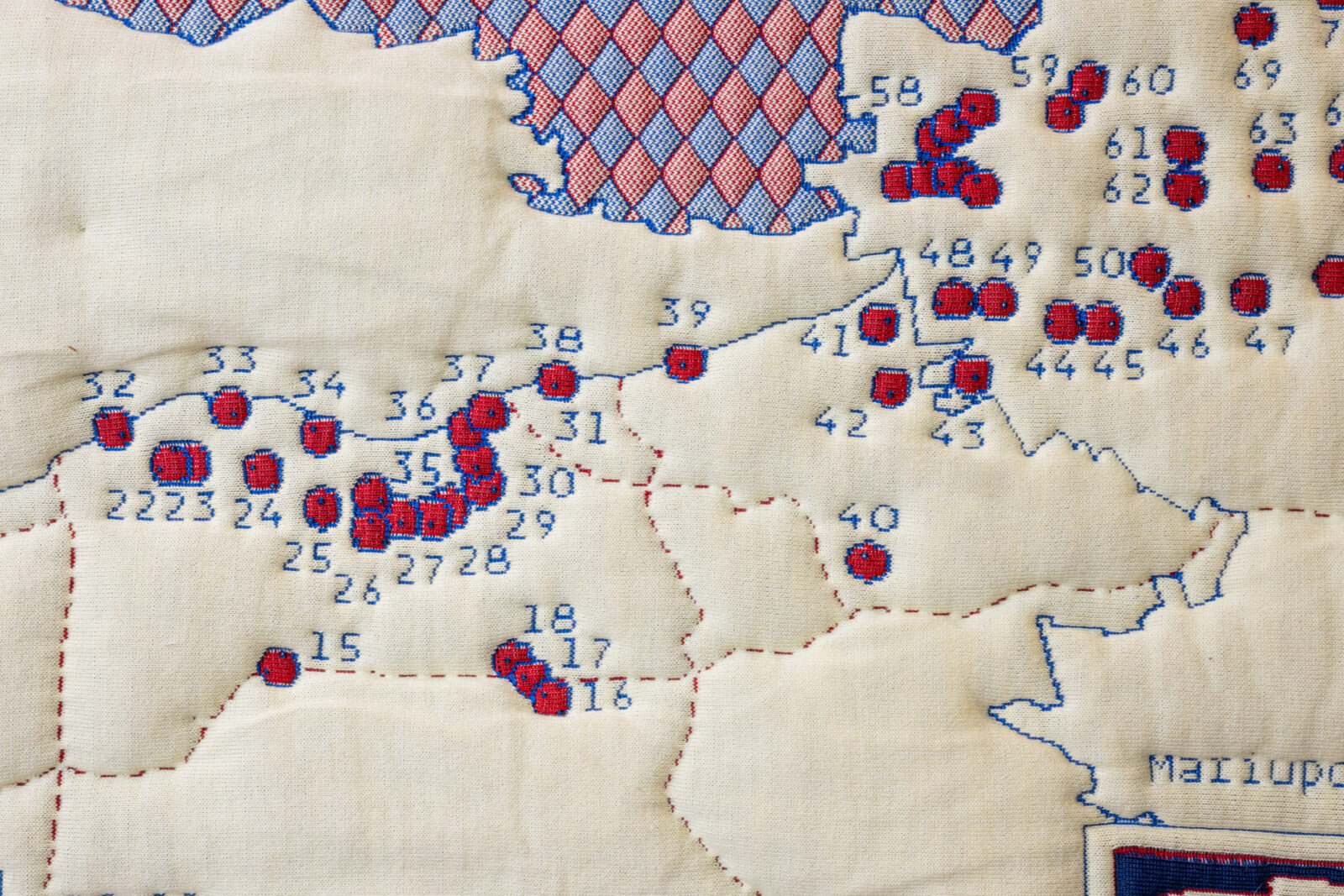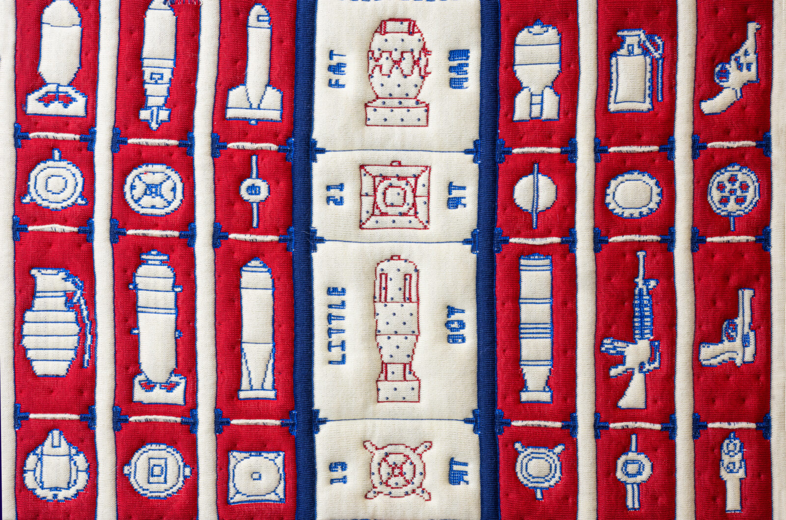 Het werk combineert symbolen, typografieën en schaduweffecten in een rijk patroon, waarbij de leesbaarheid van zelfontworpen letters zorgvuldig is getest tijdens het maakproces. Door gebruik van de dubbeldoek rondbreitechniek met vier kleuren en biologische materialen ontstaat een duurzaam en tactiel resultaat dat traditionele textieltechnieken inzet als vorm van kritiek op technologische vooruitgang en klimaatverandering.