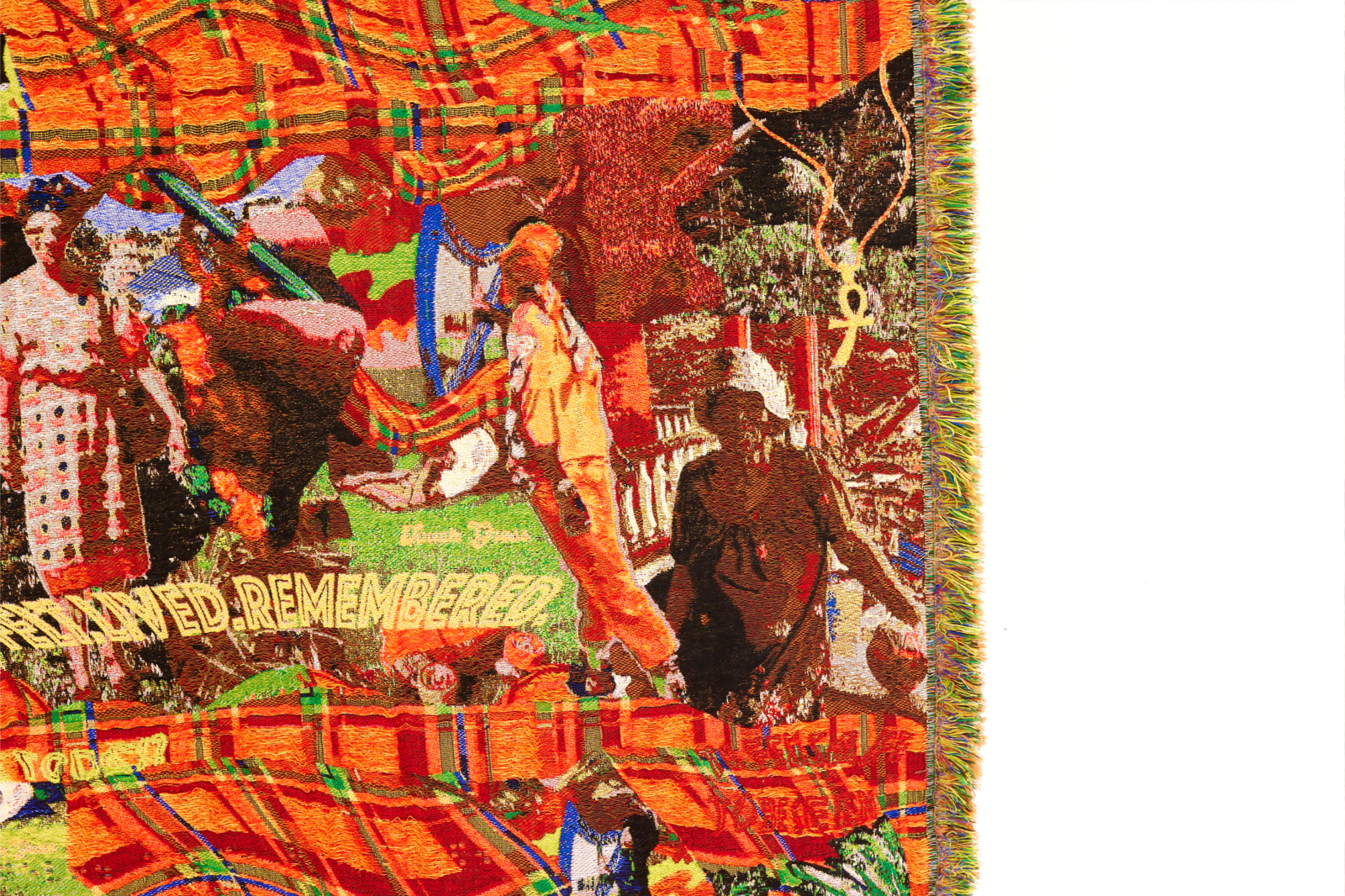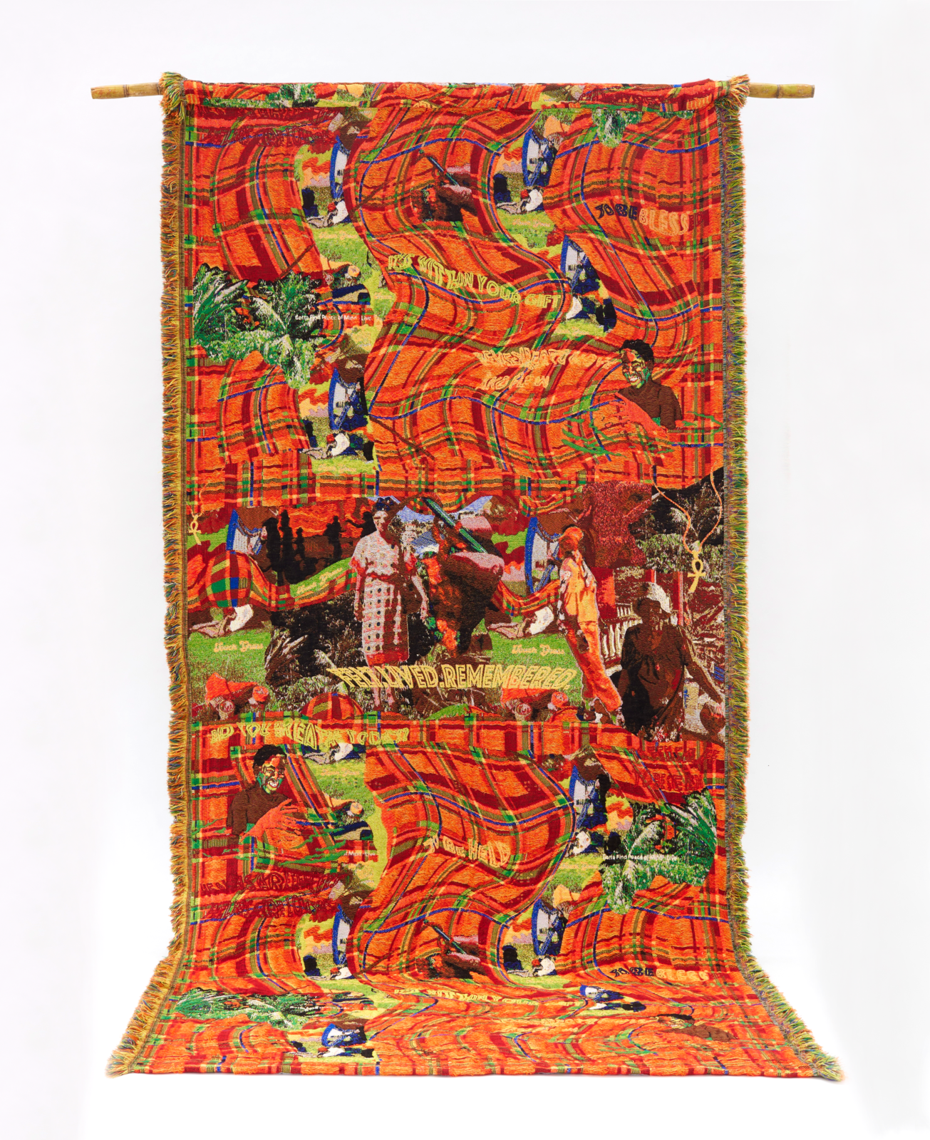 ‘Farin: Foreign’ is een wandkleed, los geweven met flotterende draden. Het werk is gemaakt van verschillende garens zoals koper-, natuurlijk geverfde zijde- (met moringa, sorrel en kurkuma), mohair-, gerecycled PET-, katoen-, lurex- en suikerrietgaren. Het onderzoekt genezing, generaties en persoonlijke en voorouderlijke verhalen vanuit het perspectief van een Black Caribbean British queer vrouw van de diaspora. Door trauma, herstel en zorg te verweven, gebruikt het natuurlijke kleurstoffen en koperdraden die energetische balans en healing-symboliek dragen. Het Madras-geïnspireerde patroon eert het Caribische erfgoed en verzet zich tegen het wissen van historische archieven.